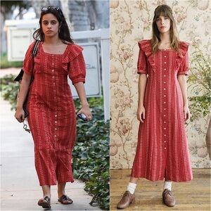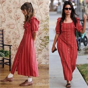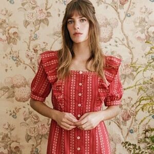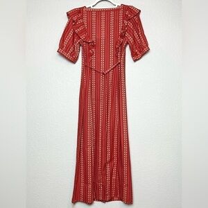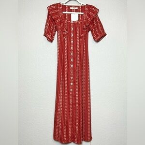 NWT CHRISTY DAWN 70s Floral Stripe Puff Sleeve Ruffled Button Front Midi Dress S
