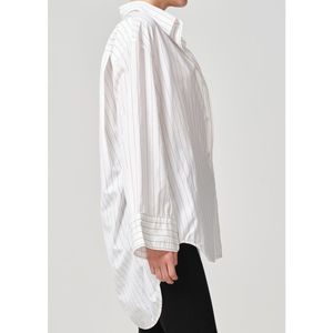 NWT CITIZENS of Humanity Cocoon Shirt In Bitter Chocolate Stripe Size Small Top