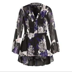 Step up your style with the Epic Floral Top. Boasting a V-neckline and dramatic bell sleeves, this peplum top is sure to be on high rotation.