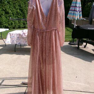 his NWT City Chic Luxe Rose Gold Formal Gown in size 12/XXS is a stunning and elegant dress perfect for formal occasions. The gown features a sequin pattern with long sleeves, a V-neckline, and a zip closure. Made of polyester, this long dress in a beautiful pink color exudes a ball gown style that is both stylish and sophisticated. Whether for a summer or spring event, this dress from City Chic is sure to make a statement and turn heads wherever you go.