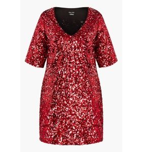 NWT CITY CHIC Plus Size CRIMSON Red SEQUIN Glam PARTY Cocktail MINI DRESS