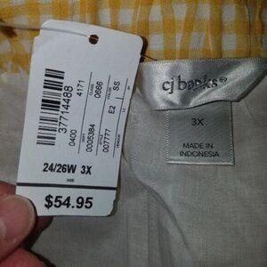 NWT CJ Banks Yellow White Gingham Print Plaid Skirt Midi Lined Pockets 3X 24/26W