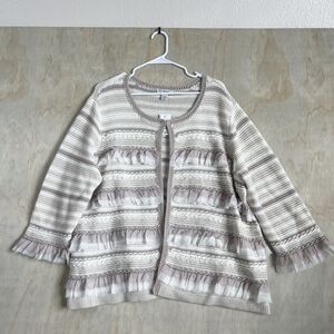 NWT CJ banks Cardigan Open Knit White Tan Beige Sweater Size 2XL Ruffle Striped