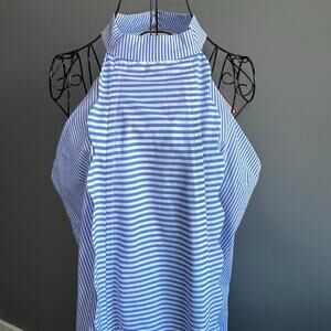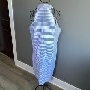 NWT CK Bradley Blue and White Striped Ruffle Halter Dress Size xL