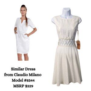 NWT CLAUDIO MILANO White 100% Linen Cut Out Sleeveless Midi Dress #8346 Size M