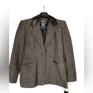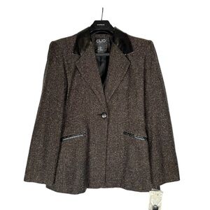 NWT CLIO Coat Women’s Size 14 Brown One button Collared