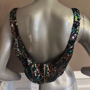 NWT CLUB L Multicolored Sequin Cropped Top Sz 10US