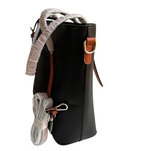 NWT CLUCI vegan leather briefcase bag in black with natural leather color accents.