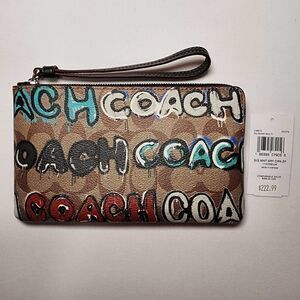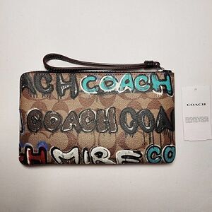NWT CM673 Coach X Mint + Serf Large Corner Zip Wristlet In Signature Canvas