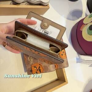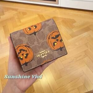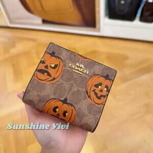 NWT COACH 2025 Snap Wallet In Signature Canvas Halloween pumpkin CCR19