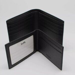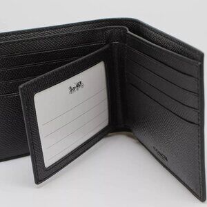 NWT COACH 3 IN 1 Compact ID Bifold Crossgrain Leather Men Wallet in Black F5911