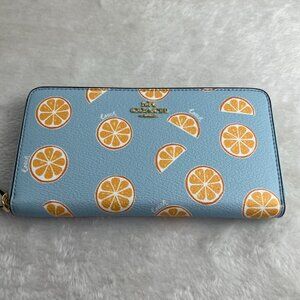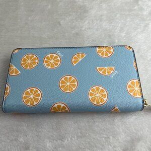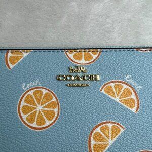 NWT COACH Accordion Zip Wallet With Orange Print IN BLUE