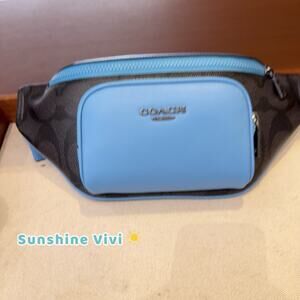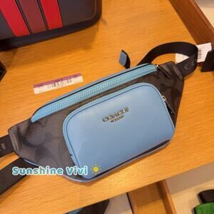 NWT COACH CBI67 Racer Small Belt Bag In Maxi Signature Canvas Charcoal/Pool