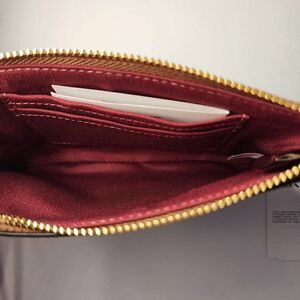 NWT COACH CK358 Corner Zip Wristlet Khaki Signature Canvas Cerise (Pink)