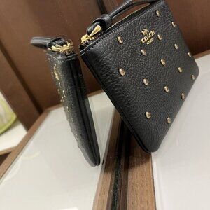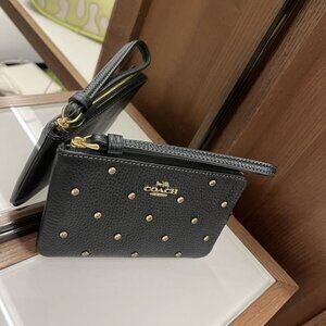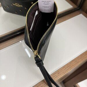 NWT COACH CORNER ZIP WRISTLET WITH CRYSTAL CAQ60 B4/BK