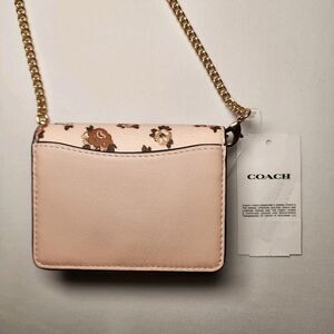 NWT COACH CZ022 Mini Leather Wallet On Chain Blush Pink Roses Rosette