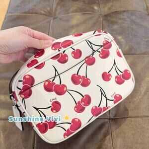 NWT COACH CZ189 Jamie Camera Bag With Cherry Print In Smooth Leather Chalk Multi
