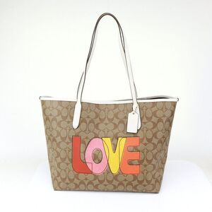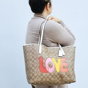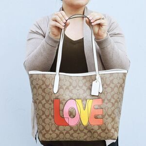NWT COACH City Tote In Signature Canvas With LOVE Print Khaki Chalk 2810
