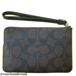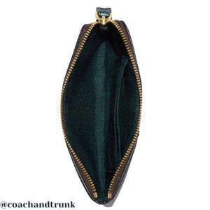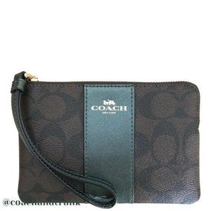 NWT COACH Corner Zip Wristlet In Signature Canvas With Metallic Forest Green