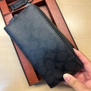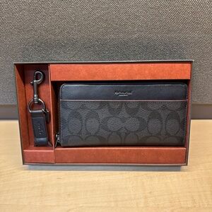 NWT! COACH F41345 Men's Boxed Accordion Long Wallet Gift Set In Signature Canvas