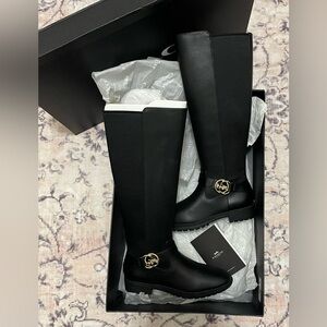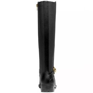 NWT COACH Farrah ll Leather Knee High Riding Boot Black Gold Buckle Size 6.5