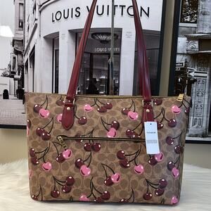 NWT COACH Gallery Tote Bag In Signature Canvas With Cherry print