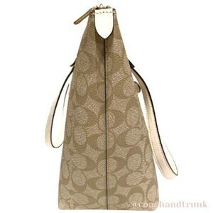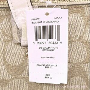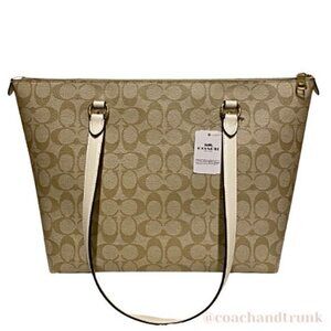 NWT COACH Gallery Tote Light Khaki Classic "C" With Chalk Leather & Gold Accents