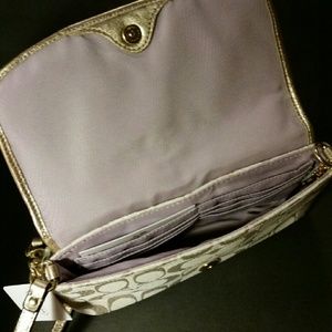 Authentic Coach Signature Ivory & Gold Metallic Wristlet