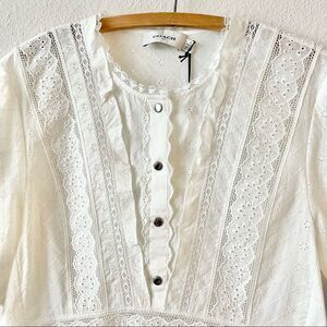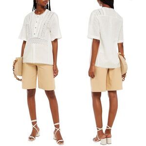 NWT COACH Lace-trimmed Broderie Anglaise Cotton Top in Cream Size 0