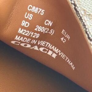 Step out in style with these brand new COACH Men's Signature Jacquard Espadrilles. These shoes feature the iconic COACH signature pattern in a stylish oak color. Perfect for adding a touch of luxury to your casual look. Get ready to turn heads with these comfortable and fashionable espadrilles!