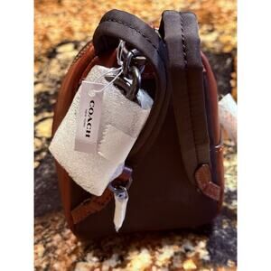 The NWT Coach Mini Court Backpack Bag Charm in Steel Blue features a beautiful bell flower print, perfect for adding a touch of whimsy to any outfit. With a zip closure and leather handle/strap, this micro-sized backpack is both functional and stylish. The gunmetal hardware and brown lining add sophistication, while the dogleash clip and split key ring provide practicality. The Coach Court model is a versatile accessory for both unisex adults, making it a must-have for those who appreciate a blend of fashion and functionality.