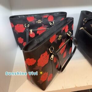 NWT COACH Station Tote Bag With Floral Print CCE23 pebbled leather/Im/Black/Red