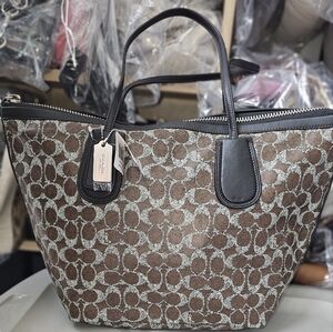 Elevate your style with the Coach Brown Signature Tote Bag. This elegant bag features a classic design, perfect for any occasion.