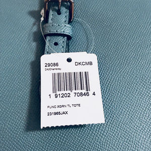 Handles with 9" drop. Outside slip pocket with turnlock closure. New with tags!