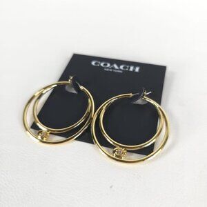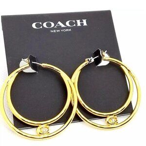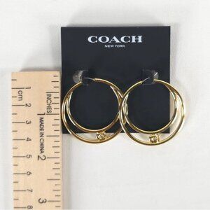 NWT COACH Women's Signature Double Hoop Gold Earrings with Cubic Zirconia Detail