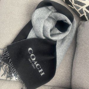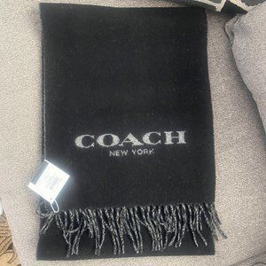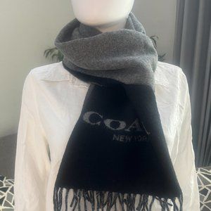 NWT COACH Wool & Cashmere Signature Scarf Black & Gray 76053 muffler