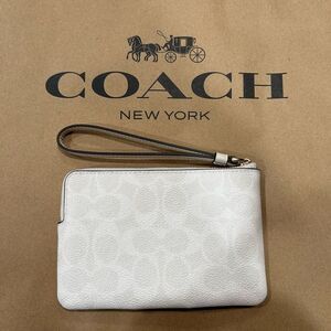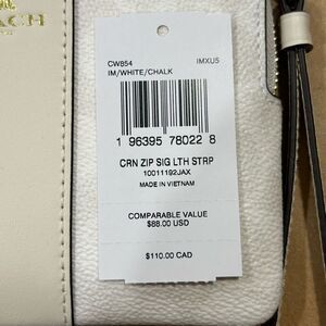 NWT COACH leather corner zip wristlet signature canvas wallet