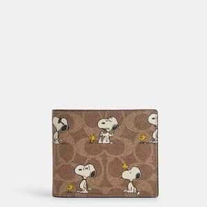 NWT COACH x PEANUTS 3-IN-1 Wallet Signature Coated Canvas Snoopy CBK56 Tan/Multi