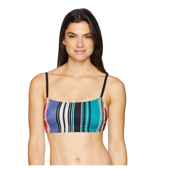 NWT COASTAL BLUE Red Blue Striped Bandeau Bikini Swim Suit Top Size Medium