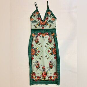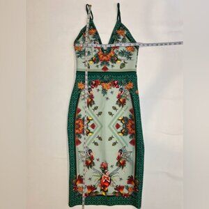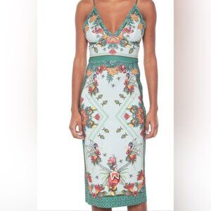 NWT COLCCI Made in Brazil 🇧🇷 V neck Sleeveless Bodycon Floral Midi Dress Sz 4