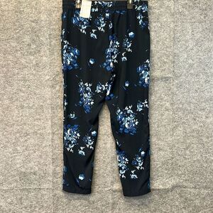 NWT COLDWATER CREEK Pants Womens Large Navy Floral Ankle Natural Fit Drawstring