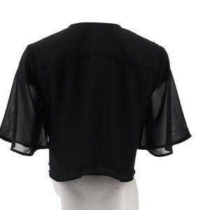 NWT COLLEEN LOPEZ CHIFFON FLUTTER SLEEVE CROPPED TOPPER BLACK XS