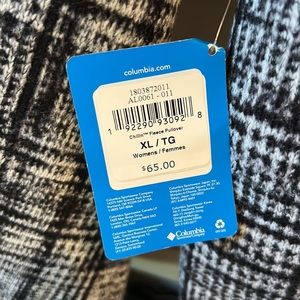 NWT COLUMBIA chillin fleece pullover in back white plaid size XL