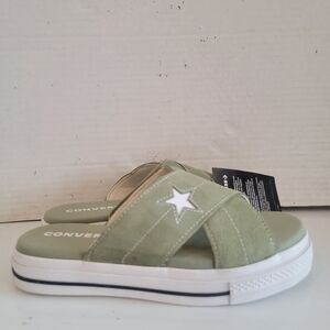 New with Tags - Converse One Star suede sage green slide style sandals (sz 8). Please see all pictures.