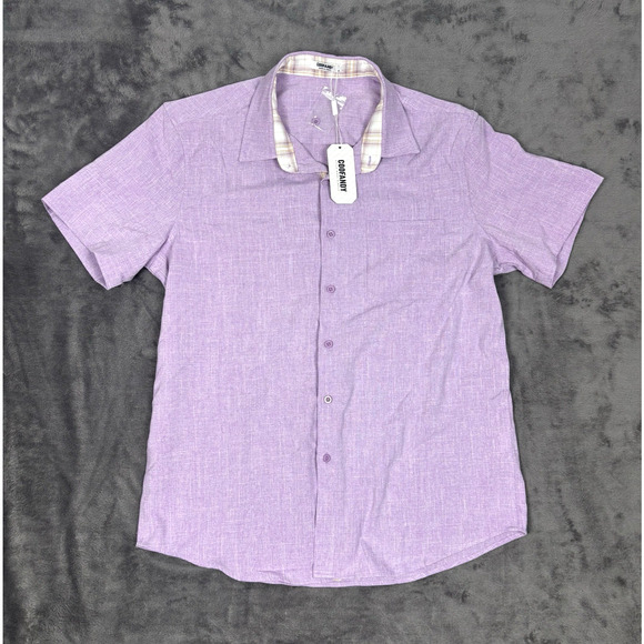 NWT COOFANDY Mens Linen Short Sleeve Summer Button Down Beach Shirt Purple M