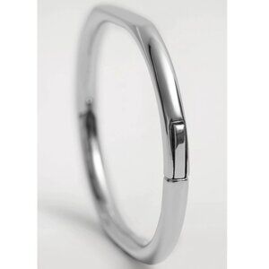 Understated yet impactful, this bangle is crafted from recycled brass that's plated with silver for a polished shine. It has a sculptural silhouette with flat-edge detailing for a refined finish.