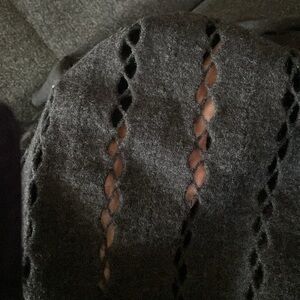 Stay cozy and stylish with this elegant gray eyelet sweater Dress Perfect for any occasion.