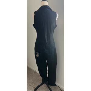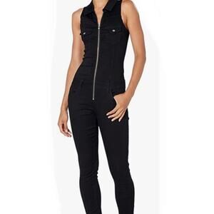 NWT COVER GIRL Black Denim Biker Skinny ZipUp Sleeveless Long Pants Jumpsuit 16W