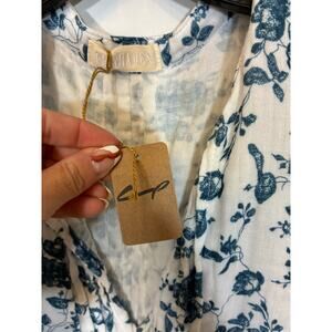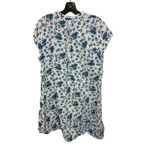 NWT CP Shades Blue Ditsy Floral Notched Neck Mini Dress Cotton Beach Malibu M