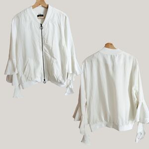 NWT CQ by CQ Ivory Linen Blend Ruffle Bomber Jacket Size L Double Zipper